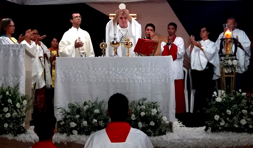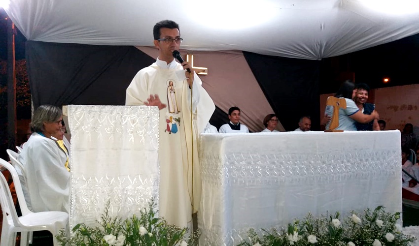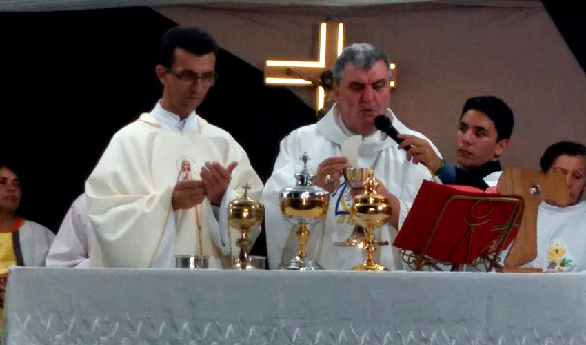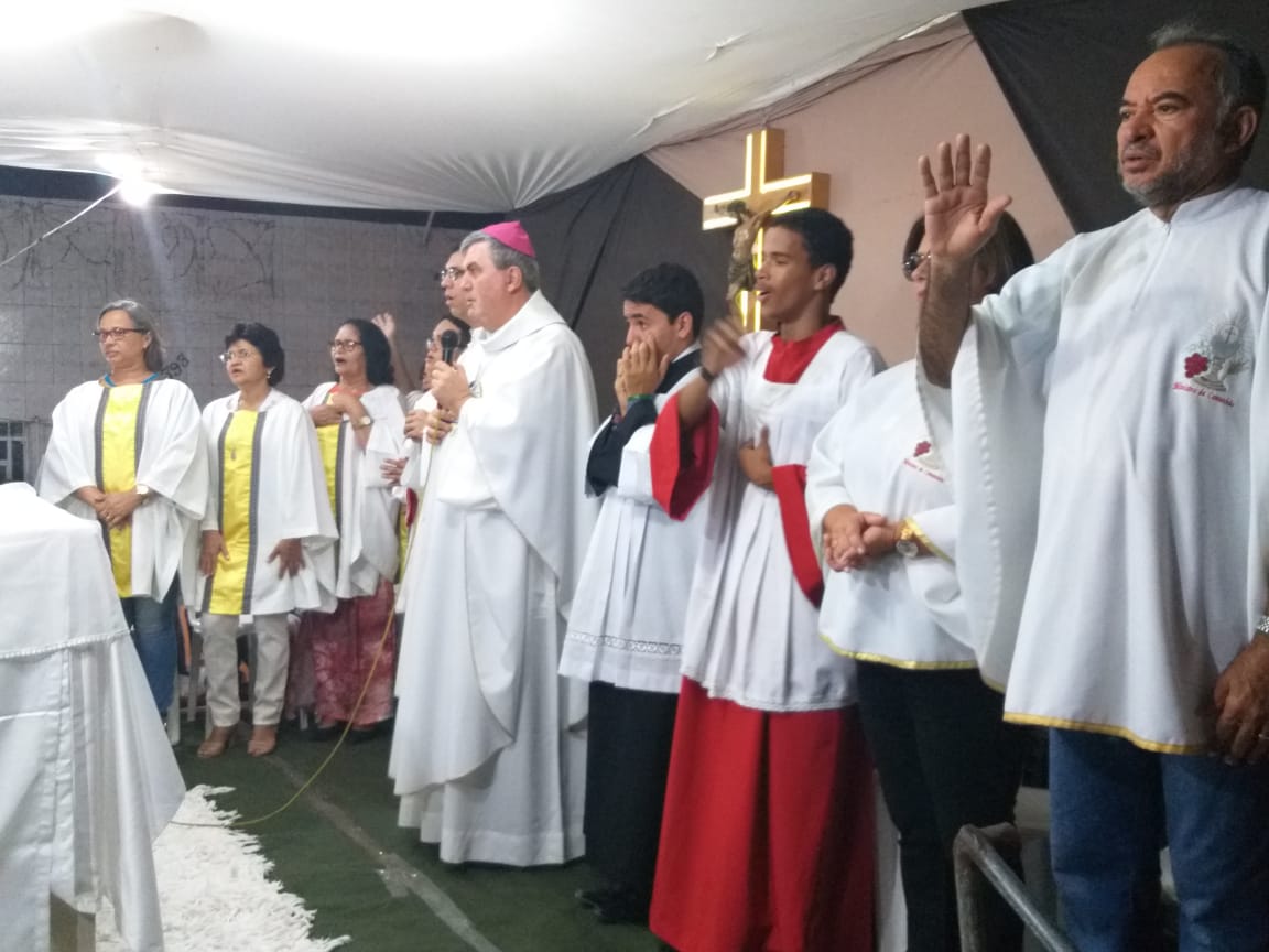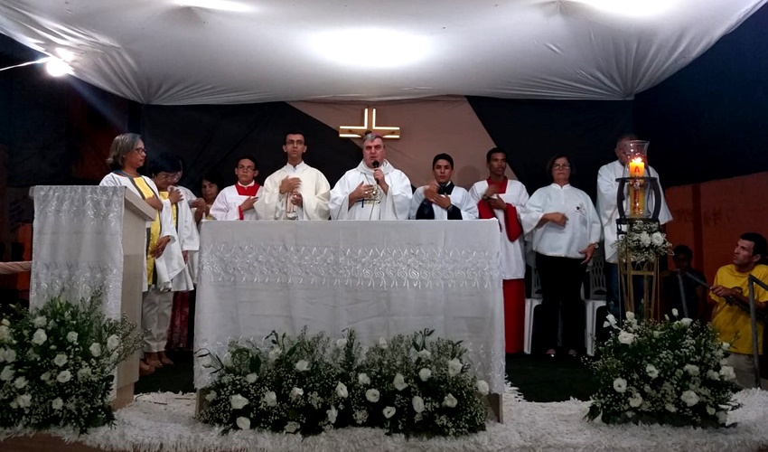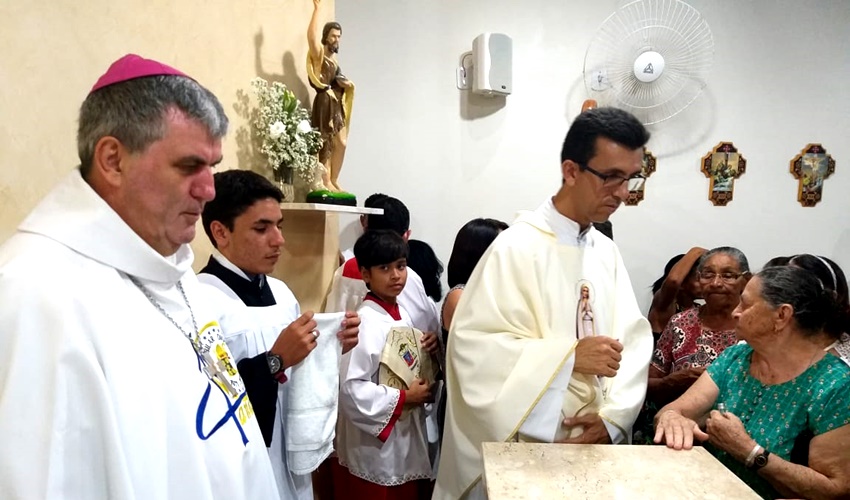 O bispo dom Guido Zendron e o Padre Roni, celebraram a santa missa neste sábado (25) na Rua do Sol dentro da Visita Pastoral à comunidade de São João Batista.