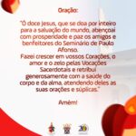 Na Diocese de Paulo Afonso, todo dia 12 de cada mês é vivido como um momento de comunhão e esperança: a Oração pelos Amigos do Seminário Dom Mário Zanetta. Nesta data, a comunidade se une em prece, pedindo a Deus que fortaleça os laços de amizade, fé e doação entre os fiéis e esta casa de formação sacerdotal.