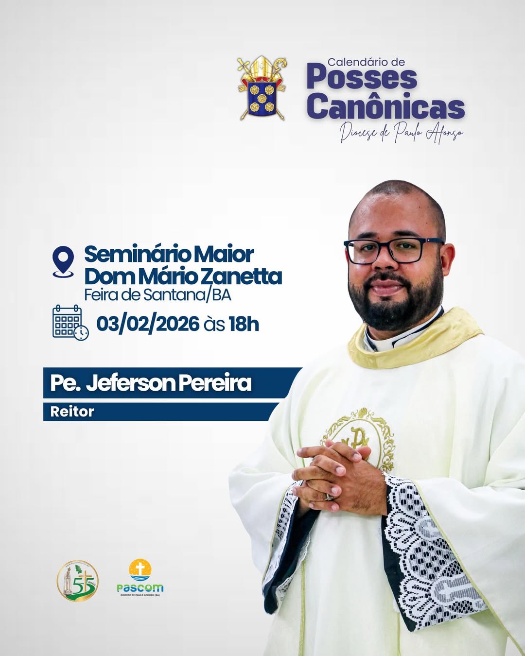 7. Pe. Jeferson Santos Pereira – Posse dia 03 de fevereiro de 2026 às 18h no Seminário Maior Dom Mário Zanetta em Feira de Santana