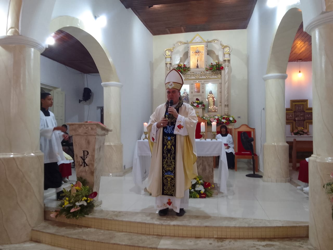 Com a igreja repleta de devotos, Dom Guido refletiu sobre o amparo de Maria junto ao seu Filho Jesus aos pés da cruz, destacando o papel da Mãe da Igreja como presença consoladora e guia espiritual. O bispo também expressou alegria por participar, pelo segundo ano consecutivo, da festividade, atendendo ao convite do Bispo de Alagoinhas, Dom Francisco Vidal.
