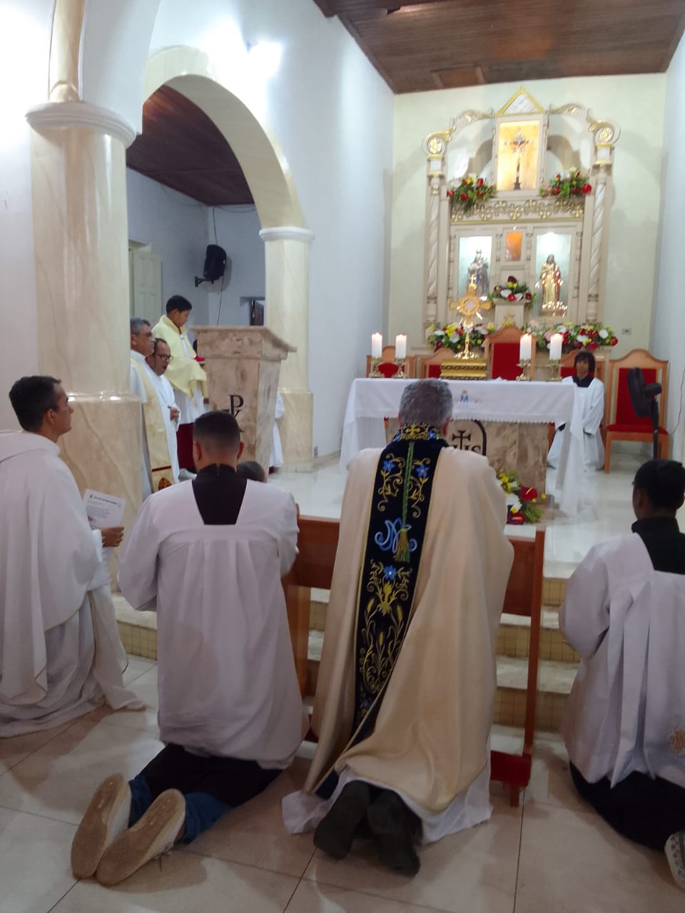 Atendendo ao convite da organização, o Bispo da Diocese de Paulo Afonso, Dom Guido Zendron, presidiu, nesta quinta-feira (28), a Santa Missa da sétima noite do novenário, celebrada ao lado do Padre Gabriel Cássio Ribeiro. Após a Eucaristia, os fiéis participaram de um momento de Adoração ao Santíssimo Sacramento, marcado por silêncio, fé e intensa devoção.