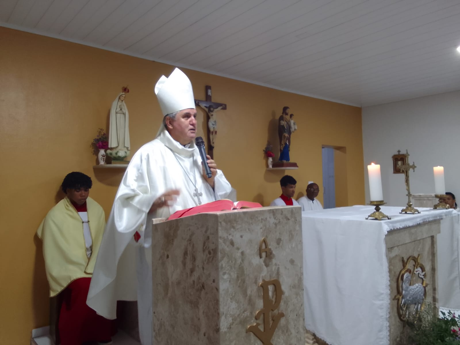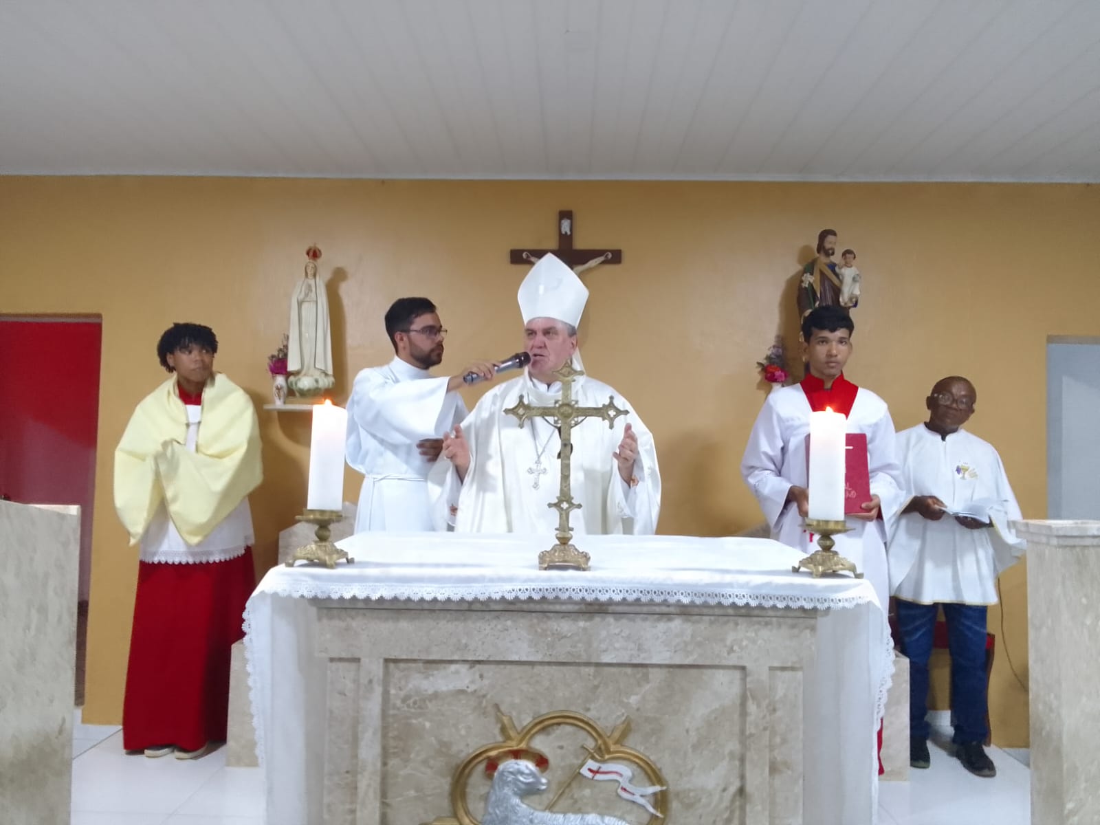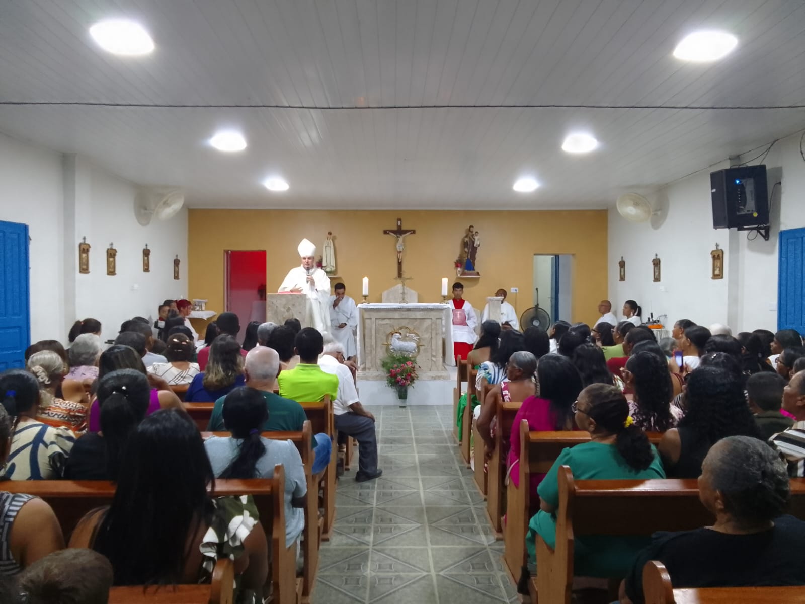 Durante a visita, Dom Guido e a equipe missionária estiveram com idosos e acamados. O bispo ouviu confissões e concedeu a Unção dos Enfermos, levando conforto espiritual às famílias. Em seguida, foi celebrada a Santa Missa na Capela de São José, reunindo centenas de fiéis da comunidade.