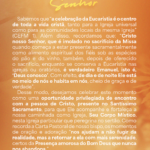 Sabemos que “a celebração da Eucaristia é o centro de toda a vida cristã, tanto para a Igreja universal como para as comunidades locais da mesma Igreja” (CEFM 1). Além disso, recordamos que: “Cristo nosso Senhor, que é imolado no sacrifício da Missa quando começa a estar presente sacramentalmente como alimento espiritual dos fiéis sob as espécies do pão e do vinho, também, depois de oferecido o sacrifício, enquanto se conserva a Eucaristia nas igrejas ou oratórios, é verdadeiro Emanuel, isto é, ‘Deus conosco’. Com efeito, de dia e de noite Ele está no meio de nós e habita em nós, cheio de graça e de verdade”.