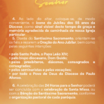 5.Diante do Santíssimo Sacramento, orientem-se os fiéis a rezarem a Oração do Ano Jubilar, bem como pelas seguintes intenções:
