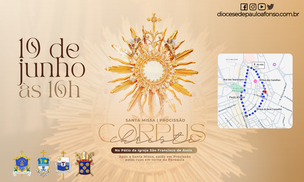A Santa Missa será presidida na Paróquia São Francisco e marcará um momento de profunda espiritualidade, adoração e manifestação pública da fé no mistério da Eucaristia. Após a Celebração Eucarística, os fiéis seguirão em procissão pelas ruas, conduzindo o Santíssimo Sacramento, em um gesto de amor e reverência ao Corpo e Sangue de Cristo.