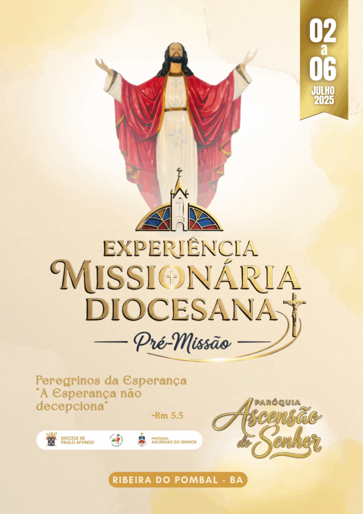 De 02 a 06 de julho de 2025, a Paróquia Ascensão do Senhor, em Ribeira do Pombal-BA, acolhe com alegria a Pré-Missão Diocesana, um momento de preparação, fortalecimento espiritual e aprofundamento na vivência missionária.
